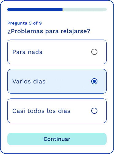¿Te ayudará la terapia? Averígualo con nuestra evaluación confidencial. Comprenderás posibles problemas de salud mental y obtén recomendaciones personalizadas de apoyo.