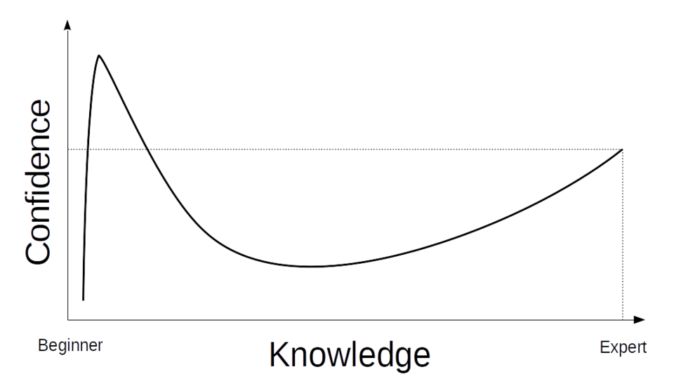 Lorsque vous êtes débutant, vous manquez des repères qui permettent une auto-évaluation précise. Vous n’avez jamais vu de véritable expertise de près, vous ne pouvez donc pas vous mesurer à elle. Votre carte mentale du domaine est incomplète, ce qui signifie que vous ne savez même pas ce que vous ignorez.
