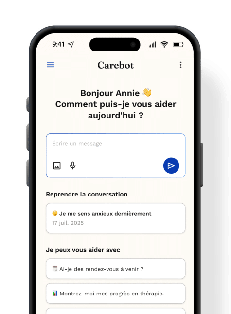 Que vous préfériez les thérapies agréées, les séances de groupe, la tenue d'un journal ou les conversations avec votre compagnon IA, notre plateforme s'adapte à vos besoins et évolue avec vous.